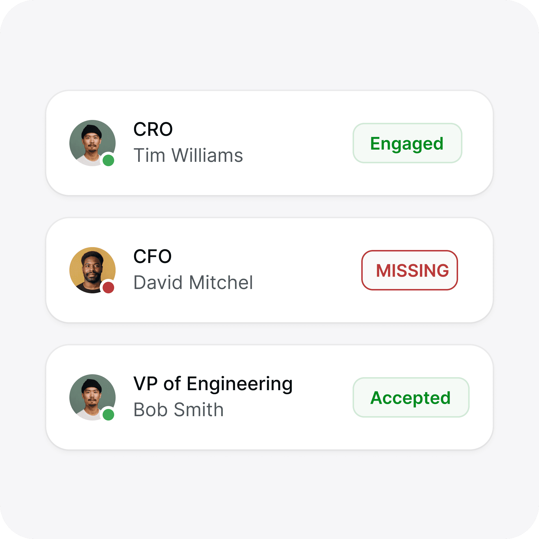 Buying cycles are messy and disordered. Stakeholders jump in and out, requirements evolve, and signature paths are rarely straightforward. CRM still shows a straight line and stages leave you guessing on risk and dates.